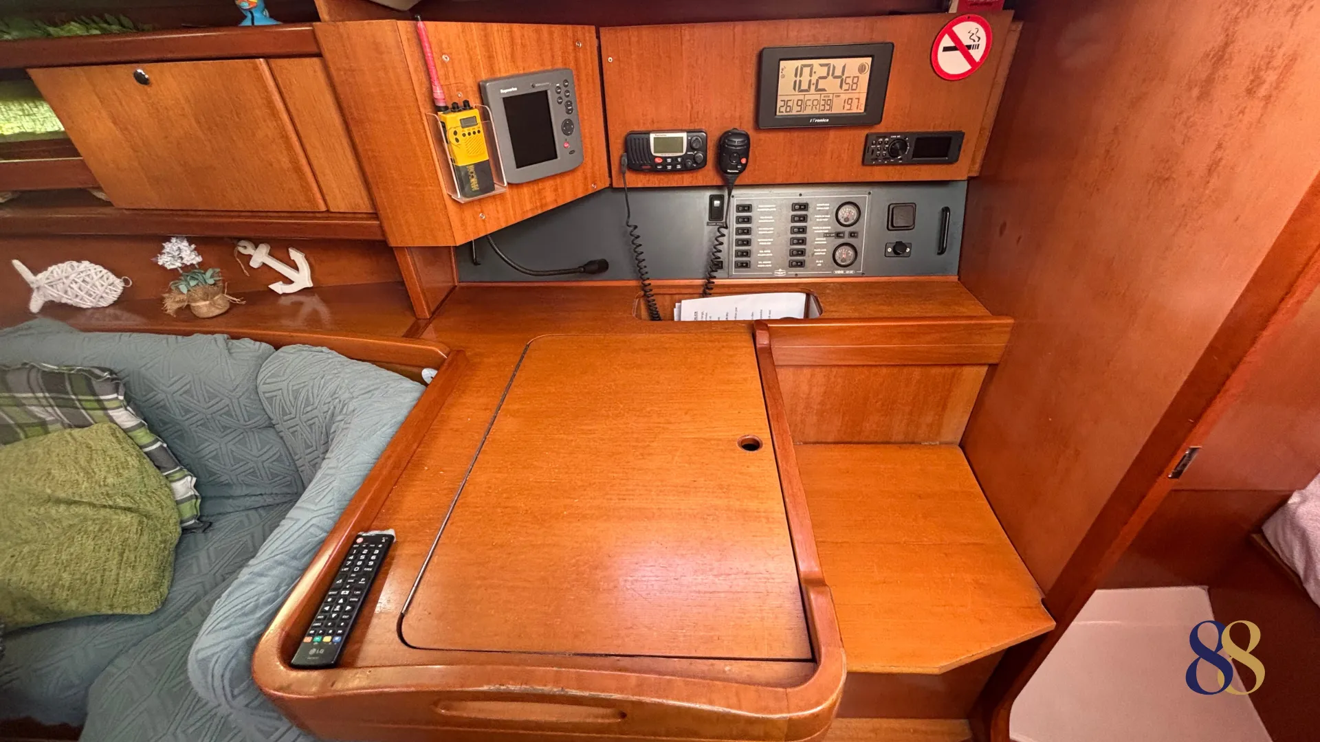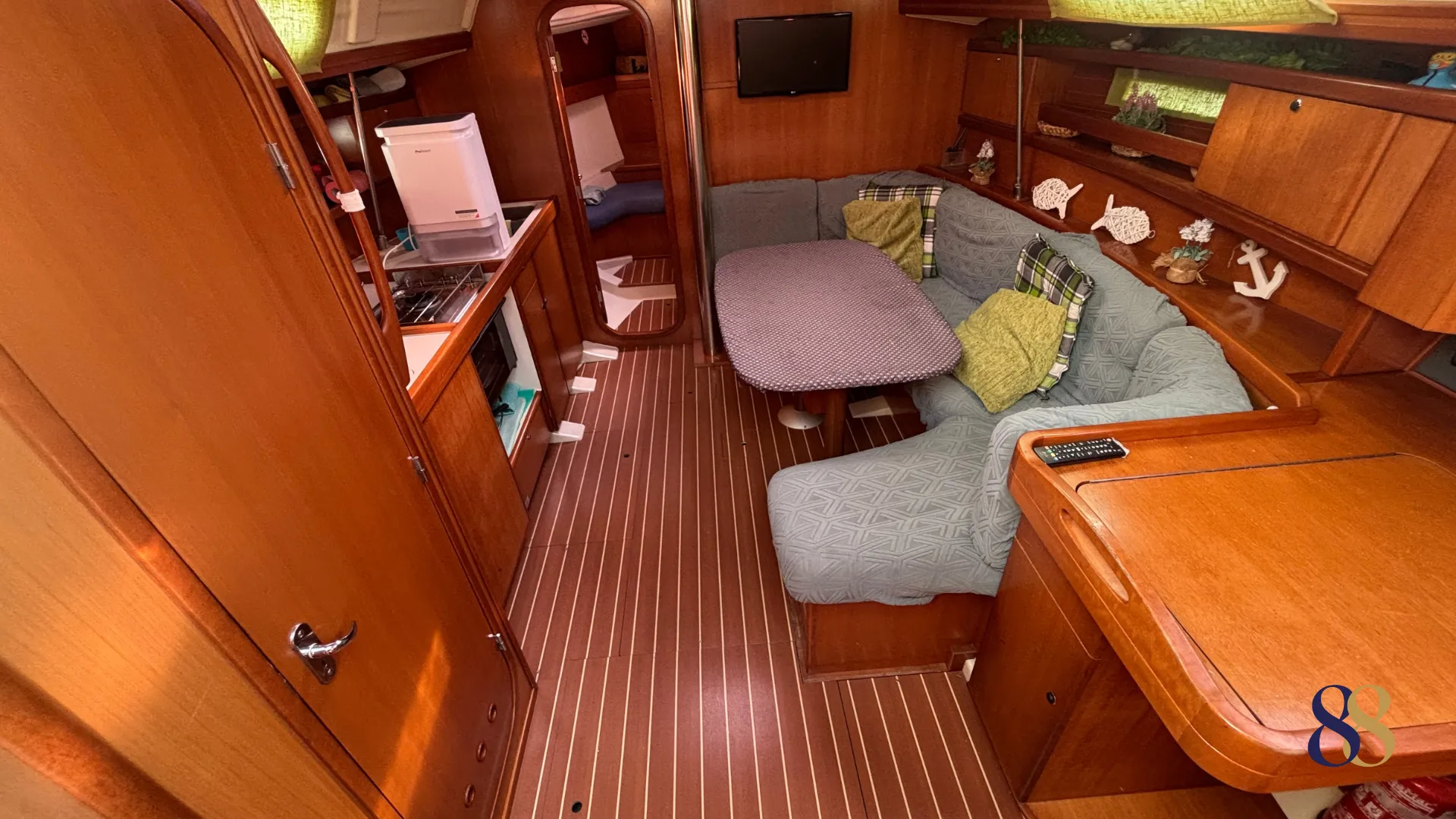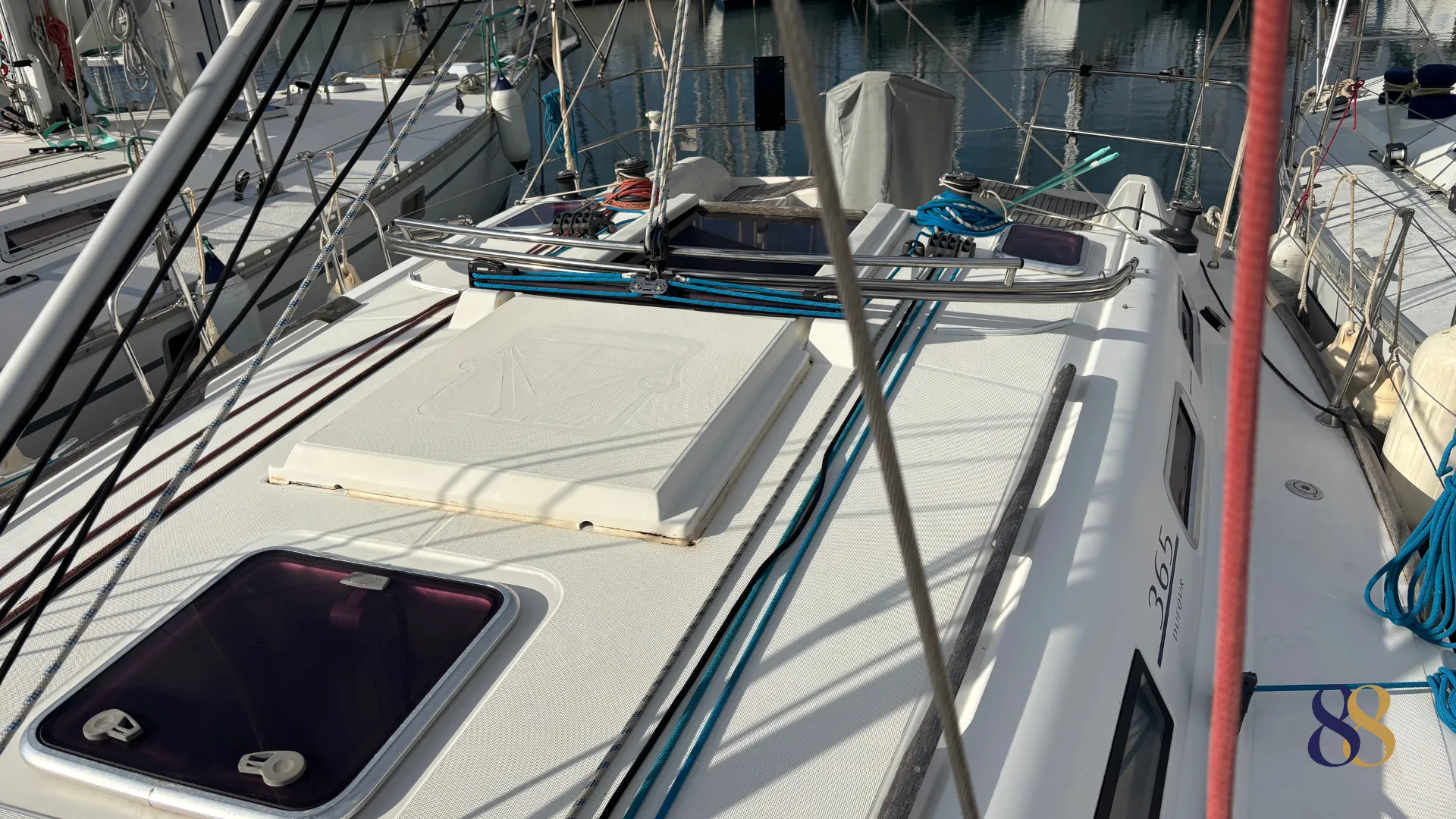 El Dufour 365 combina proporciones armónicas con un casco de líneas modernas que navega con nobleza y estabilidad. La bañera, amplia y ergonómica, facilita las maniobras con poca tripulación; la rueda centrada ofrece control claro y la disposición de winches y cabullería mantiene todo a mano. En el interior, la luz natural y la calidez de la carpintería crean un ambiente agradable para convivir a bordo. Único propietario, documentación en regla e impuestos pagados.